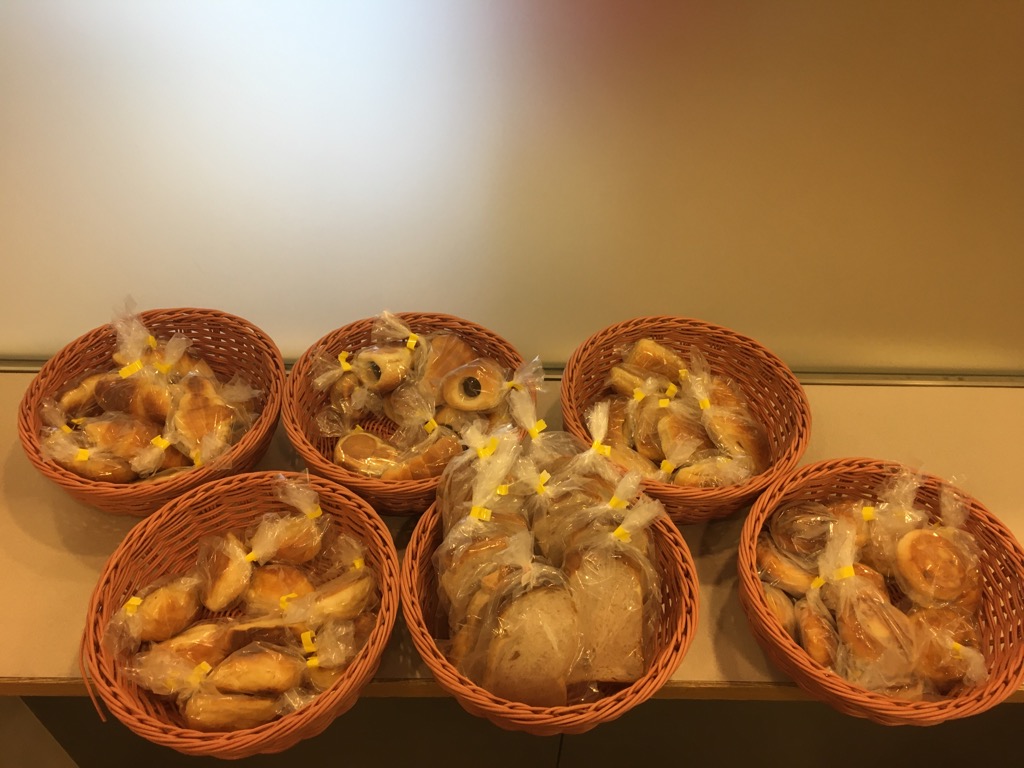 朝食のパンは個別包装をして提供しております。